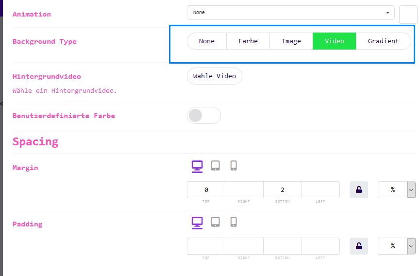 Mit dem Layout Manager können Sie Ihren Abschnitten ganz einfach Videohintergründe hinzufügen, damit Ihre Website interessant und interaktiv aussieht.